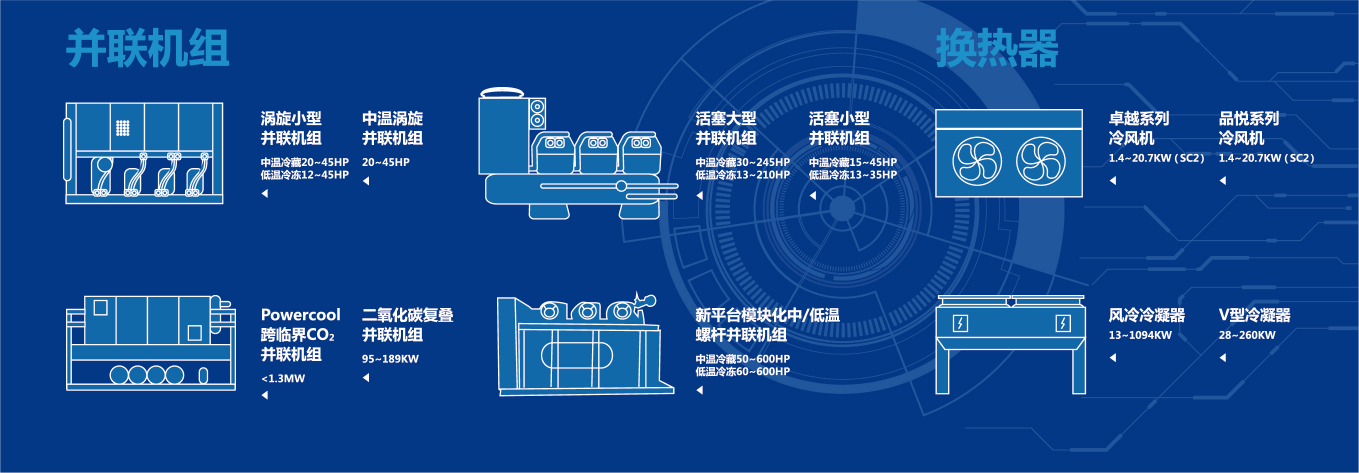•高/中/低溫全應(yīng)用,覆蓋R410A/R404A等常規(guī)冷媒,滿足前置倉(cāng)50?200㎡庫(kù)容需求